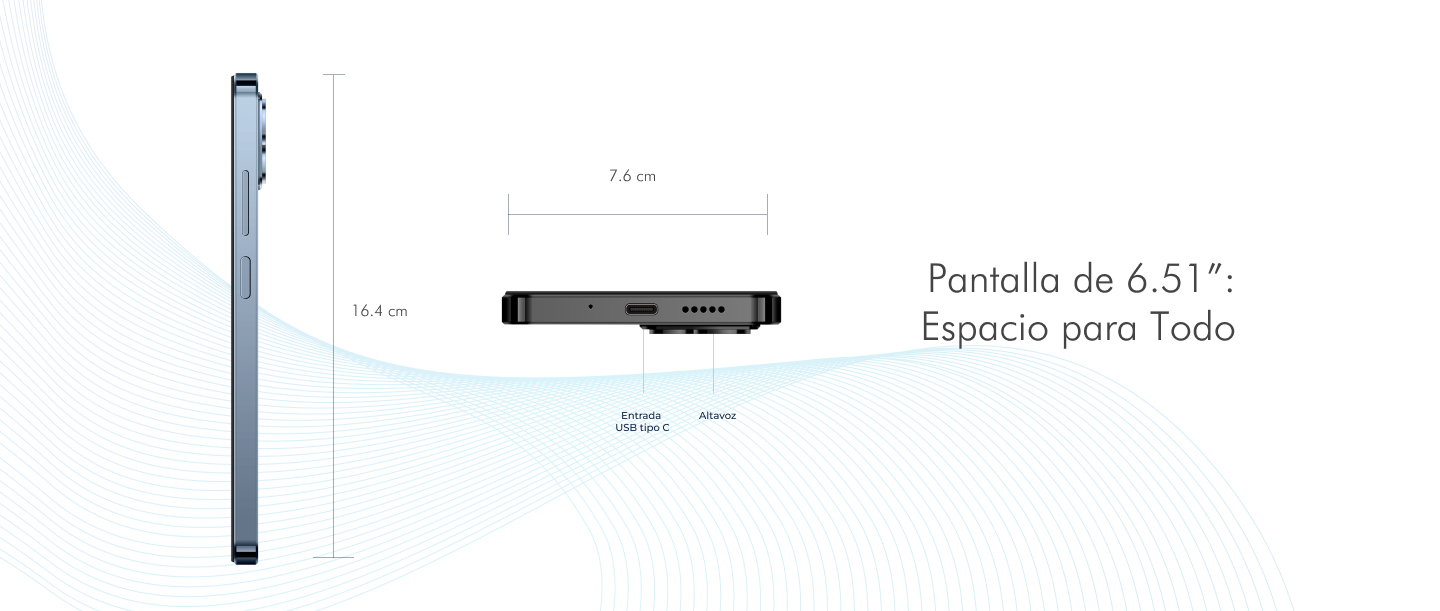 3Celular HYLine PRO X 6.51", 1600x720, Android 13, Procesador Octa-Core, 8GB RAM, 256GB Almacenamiento, 13MP/48MP+2MP, Bateria 5000mAh, Huella Dactilar - Azul Incluye: Audífonos, Protector de Pantalla y Carcasa
